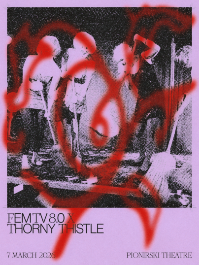 Fem TV 8.0 x Thorny Thistle Fem TV 8.0 x Thorny Thistle Friday, 7 March 2025, at 8 p.m. Pionirski Theatre (Jenko Hall), Theater performance and announcement of the anti-award ‘Thorny Thistle’ In Slovene Entrance fee: 8 EUR, reservations through the Pionirski Theatre website